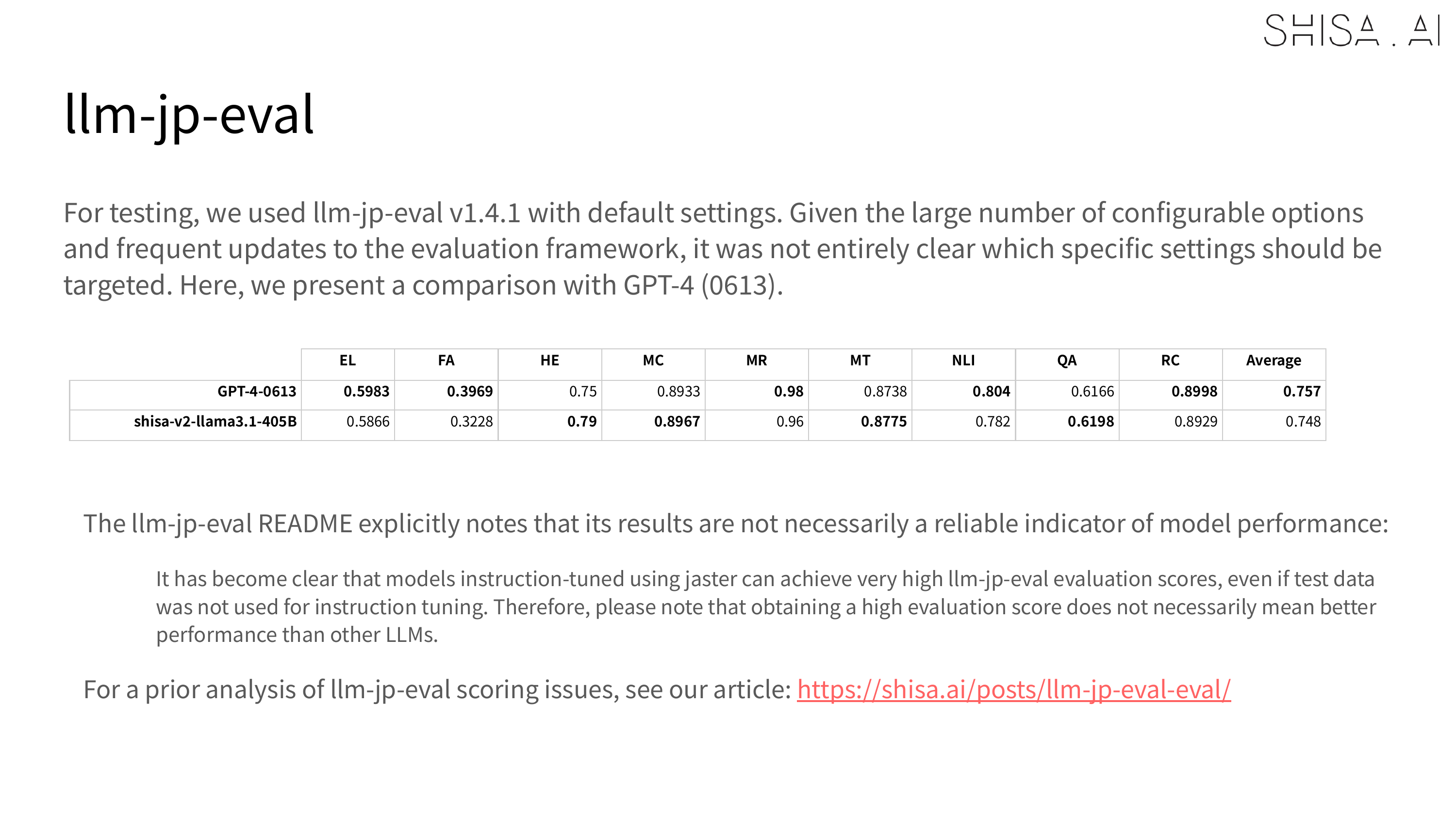 The full table with all of our scores is available on the Shisa V2 405B model card.